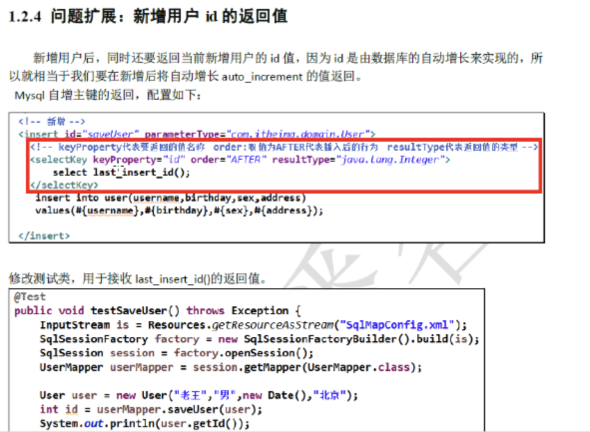 <selectKey keyProperty="id" keyColumn="id" resultType="int" order="AFTER">